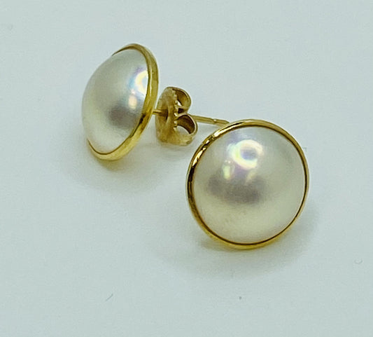 VINTAGE 14K Mabe Pearl Earrings