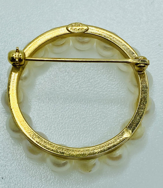VINTAGE 14K Pearl Circle Pin