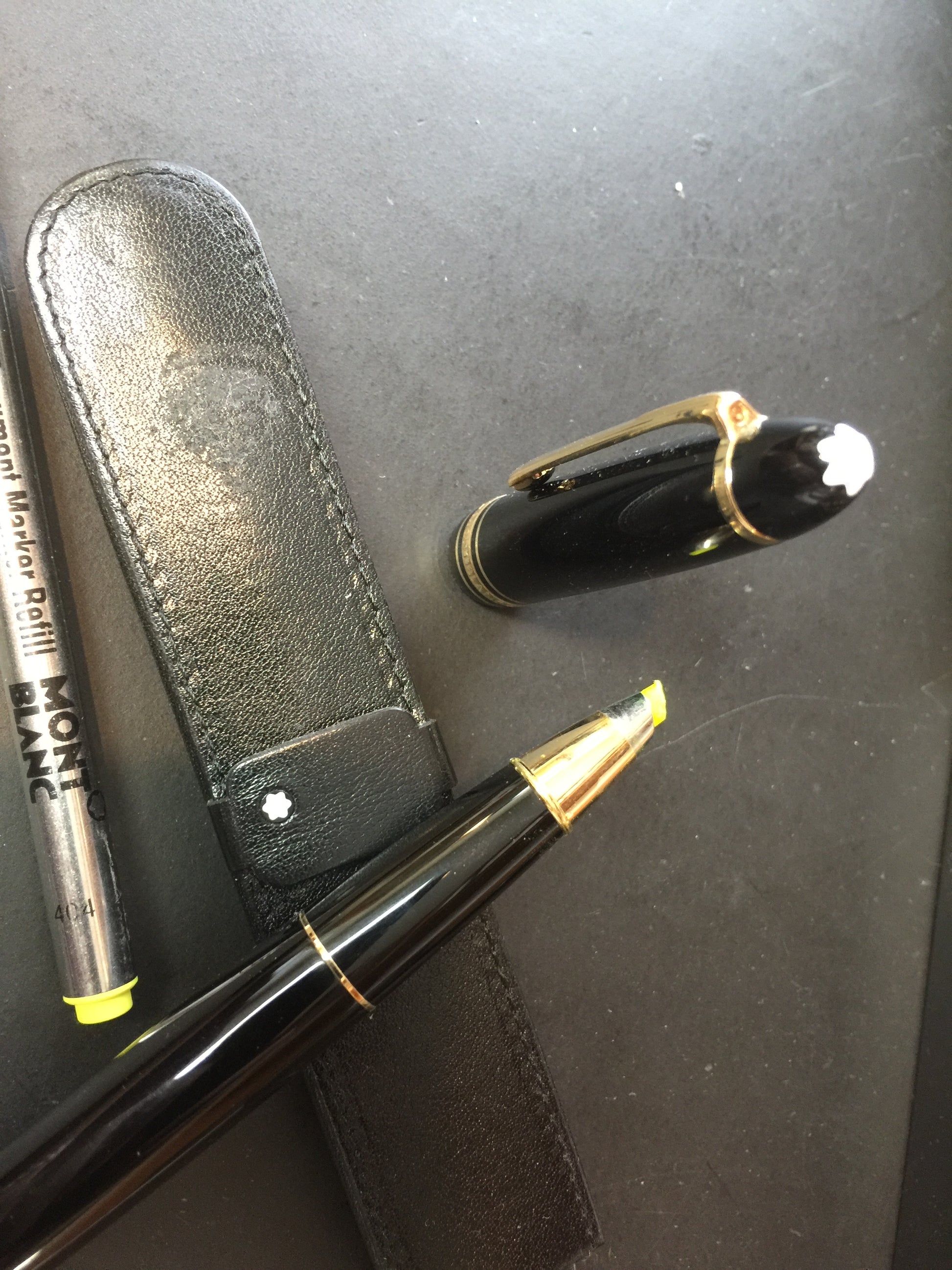 Vintage MONTBLANC Meisterstuck Document Marker 166 Yellow Highlighter Black with gold trim Includes 1 unused Cartridge VALUE $350