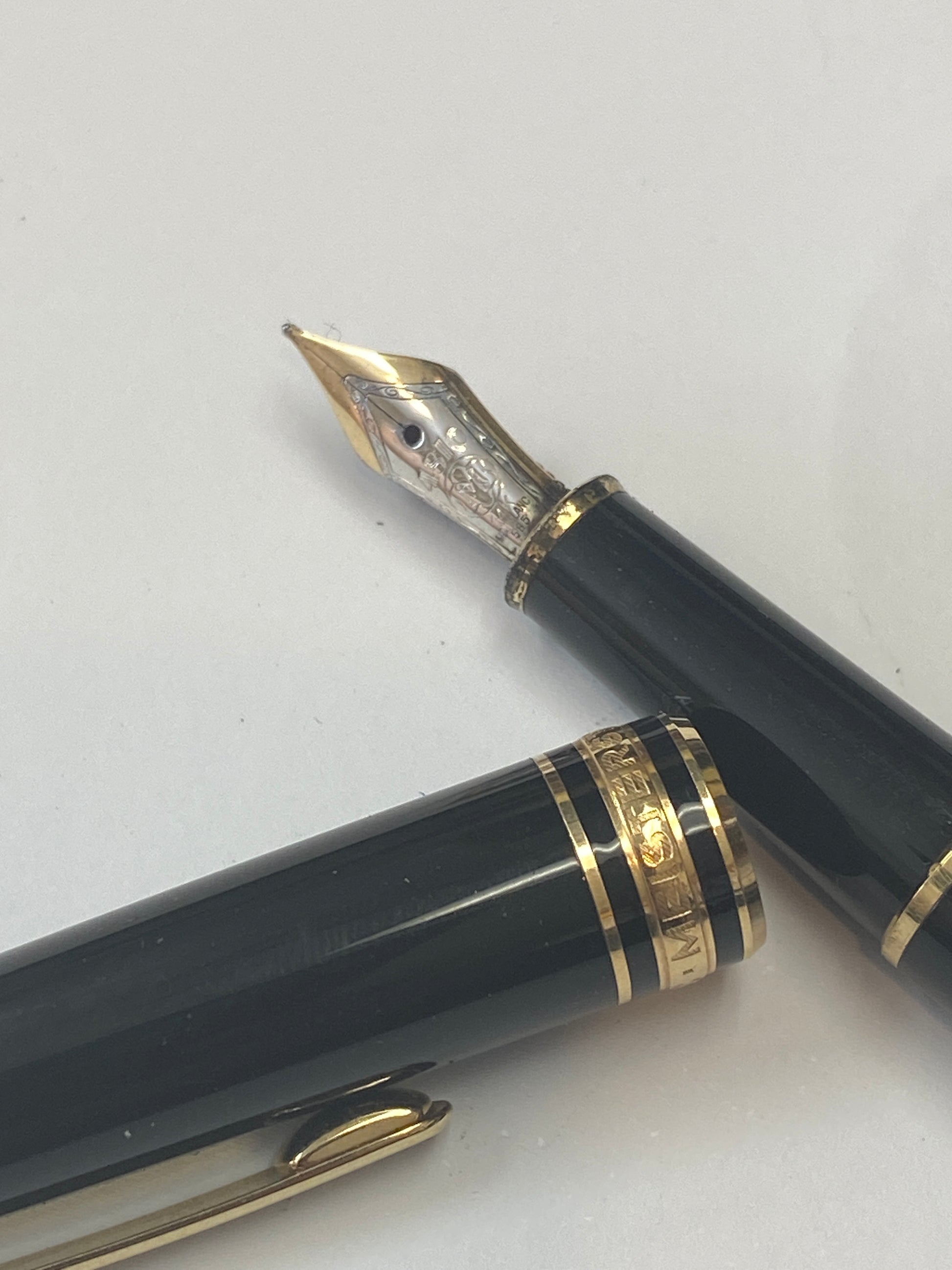 Vintage Montblanc Fountain Pen Meisterstuck 14k 585 [Near Mint] 9.13mm barrel Includes leather case measuring 6" long x 1"wide x 1" deep VALUE $300